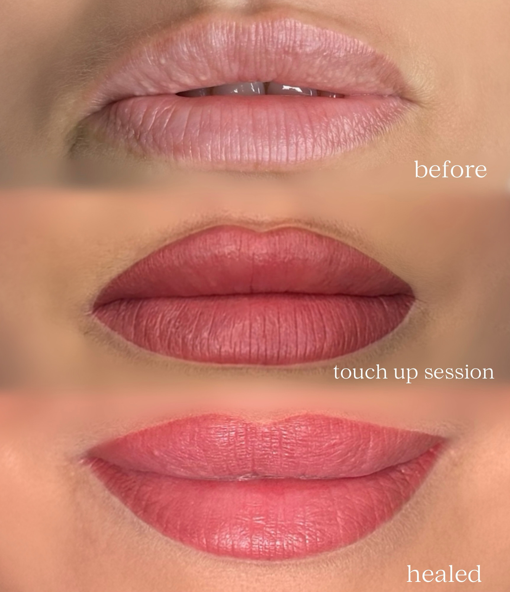 Lip Blush is a PMU (Permanent Makeup) treatment where pigment is carefully implanted into the lips to enhance their natural colour and shape. This technique creates soft, tinted lips with improved definition, resulting in a fresh, youthful look that lasts.